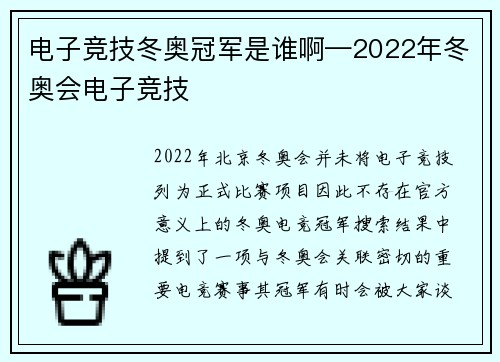 电子竞技下架后续 电子竞技官方